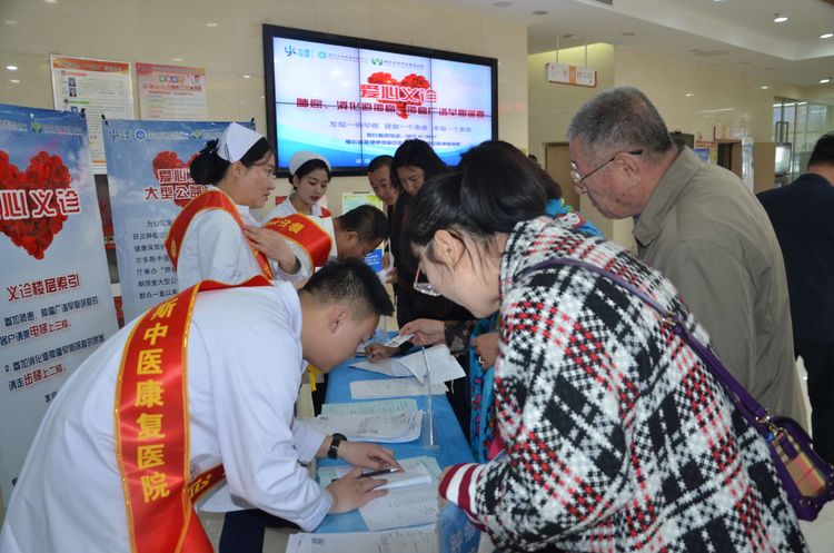 工作人員為義診人員進(jìn)行肺癌、消化道、腫瘤廣譜篩查等